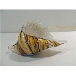 MINCHELLA MURANO STYLE BROWN & WHITE GLASS CONCH SEA SHELL. AS SHOWN. VIEW PICTURE FOR DETAIL.