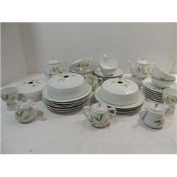 LOT 42 CHERRY CHINA 6 PLACE SETTING LEAF PATTERN: 8 PLATES, 6 SAUCERS, 6 CUPS, 2 TEA POTS, 3 PAIR CREAMER & SUGAR, 2 EGG HOLDERS, 6 BERRY BOWLS,...
