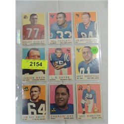 LOT 9 1959 TOPPS FOOTBALL PLAYER CARDS: #89, 160, 166, 147, 163, 169, 113, 21, 101. AS SHOWN. VIEW PICTURE FOR DETAIL.
