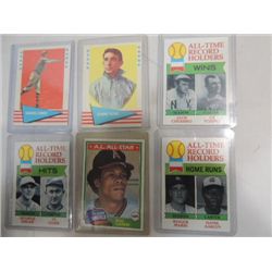 LOT 6 1979 TOPPS #413, 416, 411 BASEBALL ALL TIME RECORD HOLDERS CARDS & 1981 TOPPS #100 ROD CAREW & FLEER #21 & 52 BASEBALL GREATS CARD...