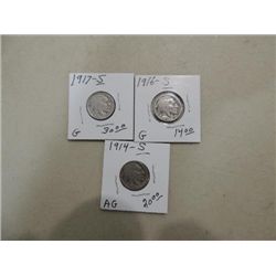 LOT 3 1914-S, 16-S, 17-S (G) BUFFALO NICKELS