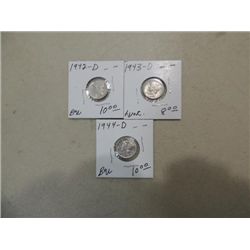 1942-D, 43-D, 44-D UNCIRCULATED MERCURY DIMES