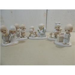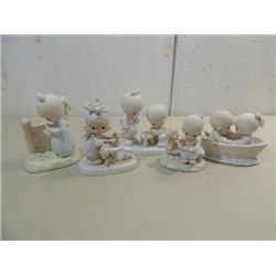 LOT 5 1979-91 PRECIOUS MOMENTS RELIGOUS PORCELAIN FIGURINES: LOVE NEVER FAILS, MY STRENGTH, REJOICING, KEPP YOU, LITTLEONES. AS SHOWN. VIEW PICTURE