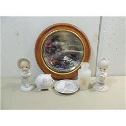 LOT 6 1981-2001 ASSORTED PRECIOUS MOMENTS COLLECTIBLES: 3 MONTH ITEMS, SMALL VASE, 2 PLATES. AS SHOWN. VIEW PICTURE FOR DETAIL.