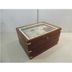 16X12X8 WOOD NAUTICAL THEME STORAGE BOX, FLIP TOP