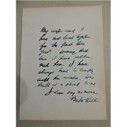 BABE RUTH ON LETTER SIGNATURE AUTOGRAPH. NO COA. AS SHOWN. VIEW PICTURE FOR DETAIL. PLEASE BE ADVISED, AND INFORMED REGARDING SIGNATURES OR AUTOG