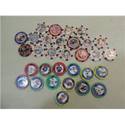 LOT 31 SPORT POKER CHIPS; 18 2005 TOPPS BASKETBALL & 13 1997 PLAYOFF FOOTBALL. AS SHOWN. VIEW PICTURE FOR DETAIL.