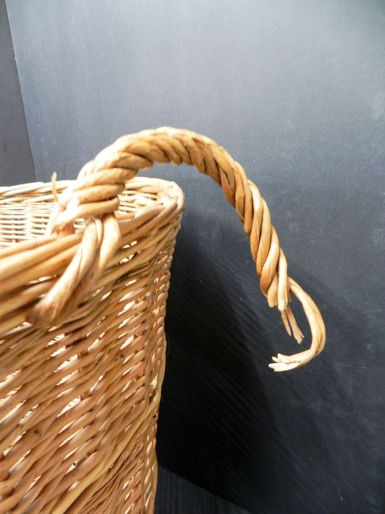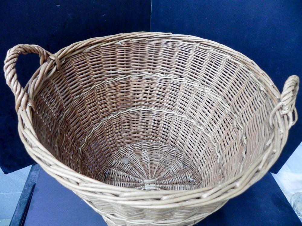 HUGE WICKER BASKET. MEASURES 16' HIGH AND 17.5" WIDE, ONE HANDLE IS DAMAGED BUT STILL VERY USEFUL