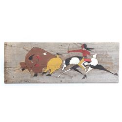 Included in this lot we have a original signed Howling Buffalo carved wood art piece. Howling Buffalo is a Native American artist located in Lame Deer