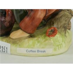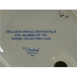 This German boy on coffee break is incised 1976. This is Exclusive Special Edition No. 8 with 1976 date, designed for members of the Goebel Collectors Club, titled Coffee Break. Number 409 with the Missing Bee Mark, Trademark number 6.. A rare one. Excell