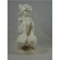 This young girl with two geese has white overglaze with detailed hand painted face. 7½