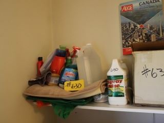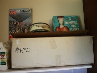 HUMMINGBIRD FEEDER, COLLECTOR TIN, ATLAS & ASSORTED CLEANING SUPPLIES
