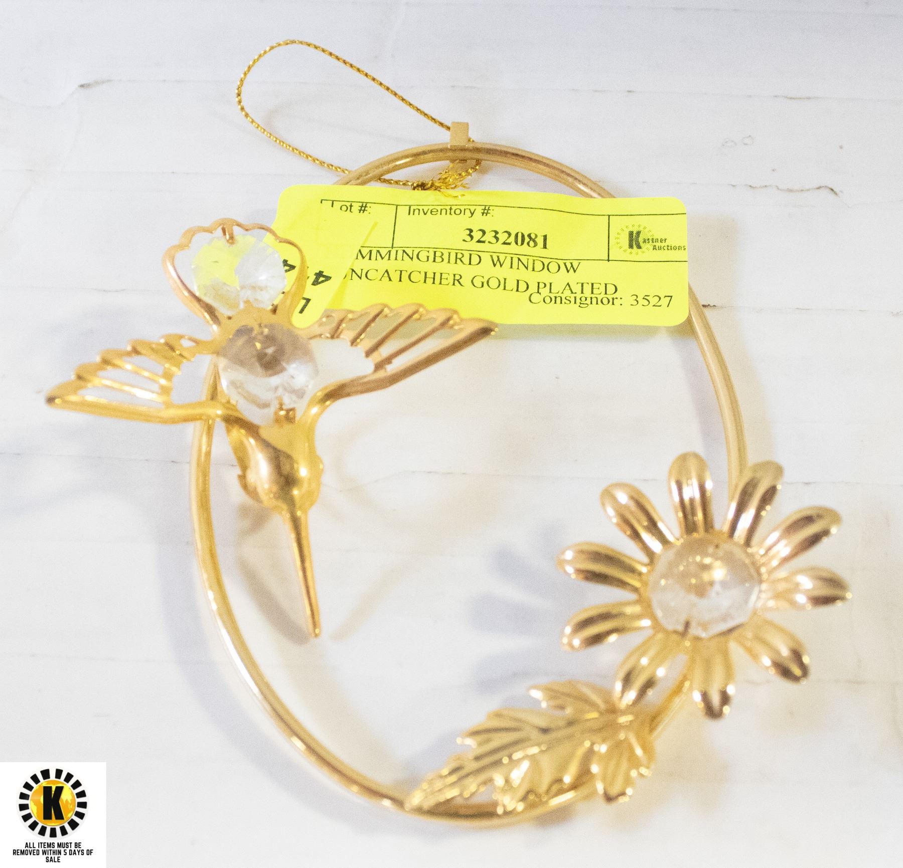 HUMMINGBIRD WINDOW SUNCATCHER GOLD PLATED