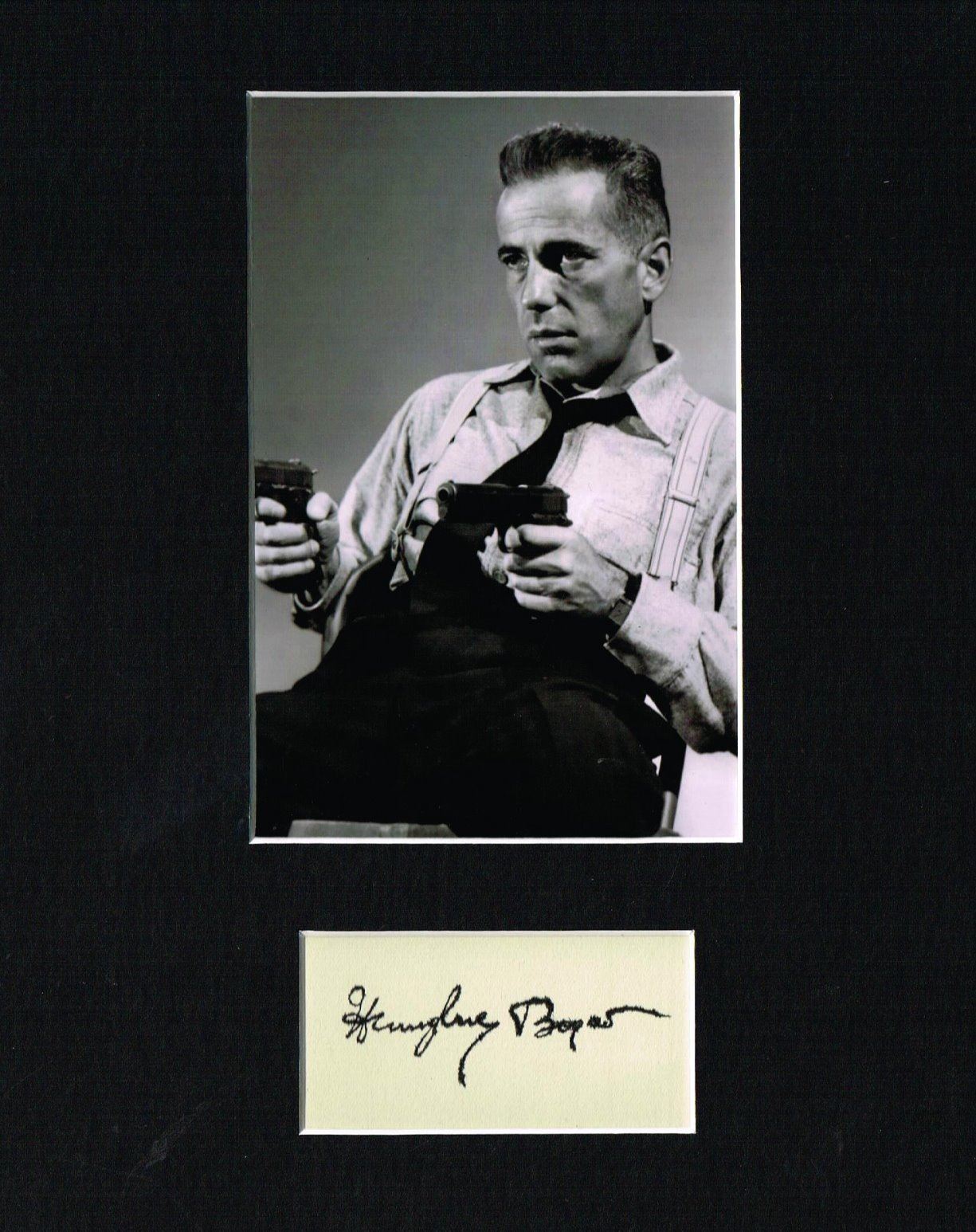 Humphrey Bogart made classics of the films 'Casablanca, Maltese Falcon, and African Queen' among others. . Best known for playing a tough guy with a heart of gold, Bogart made dozens of films before his untimely death in 1957. Bogart's autograph is mounted and framed and supplied with coa.