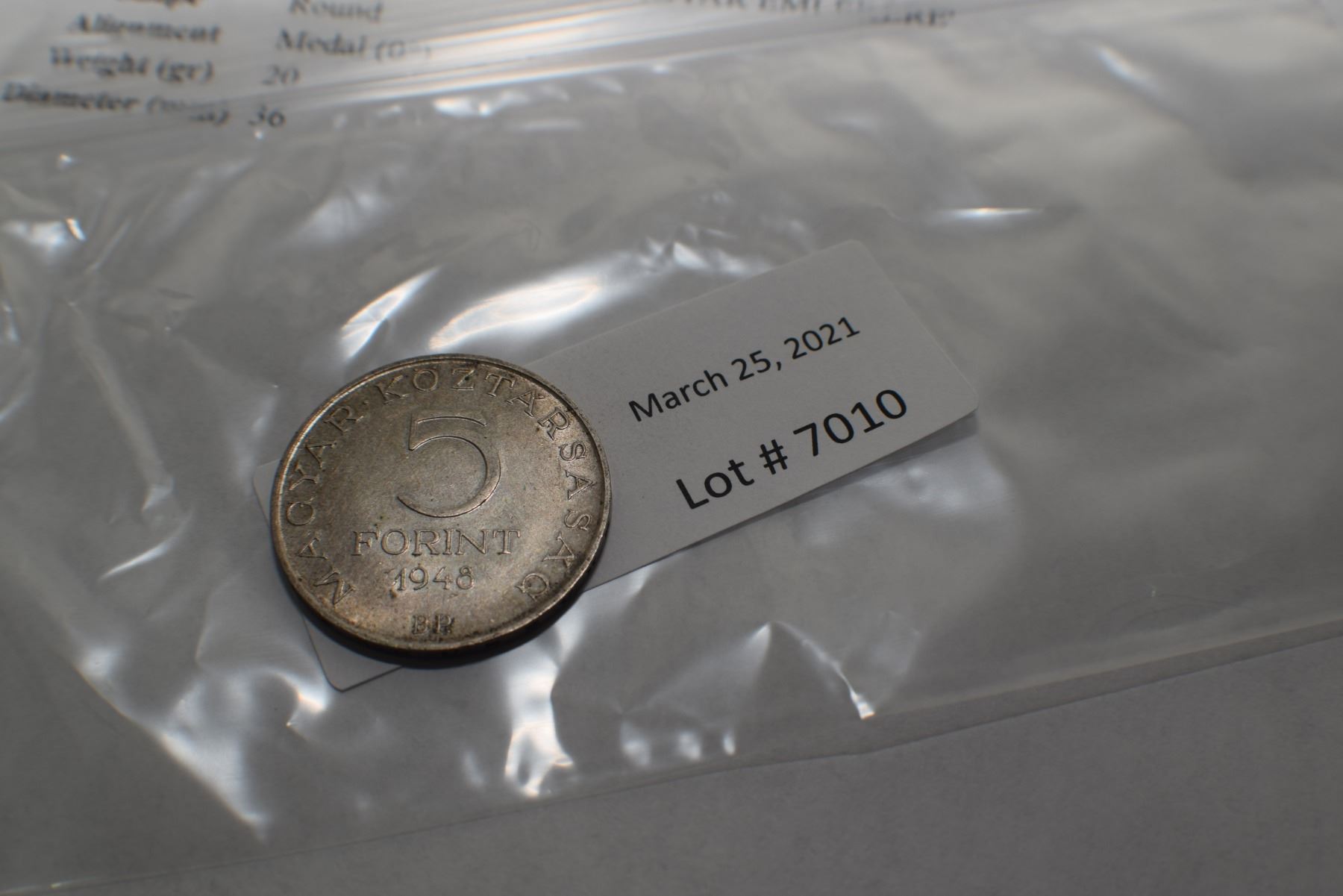 HUNGARY 5 FORINT 1948 COIN 50% SILVER