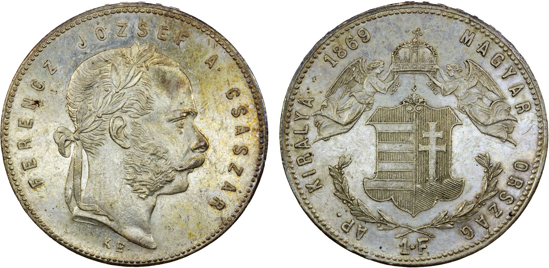 HUNGARY: Franz Josef I, 1848-1916, AR forint, Kremnitz, 1869-KB, XF