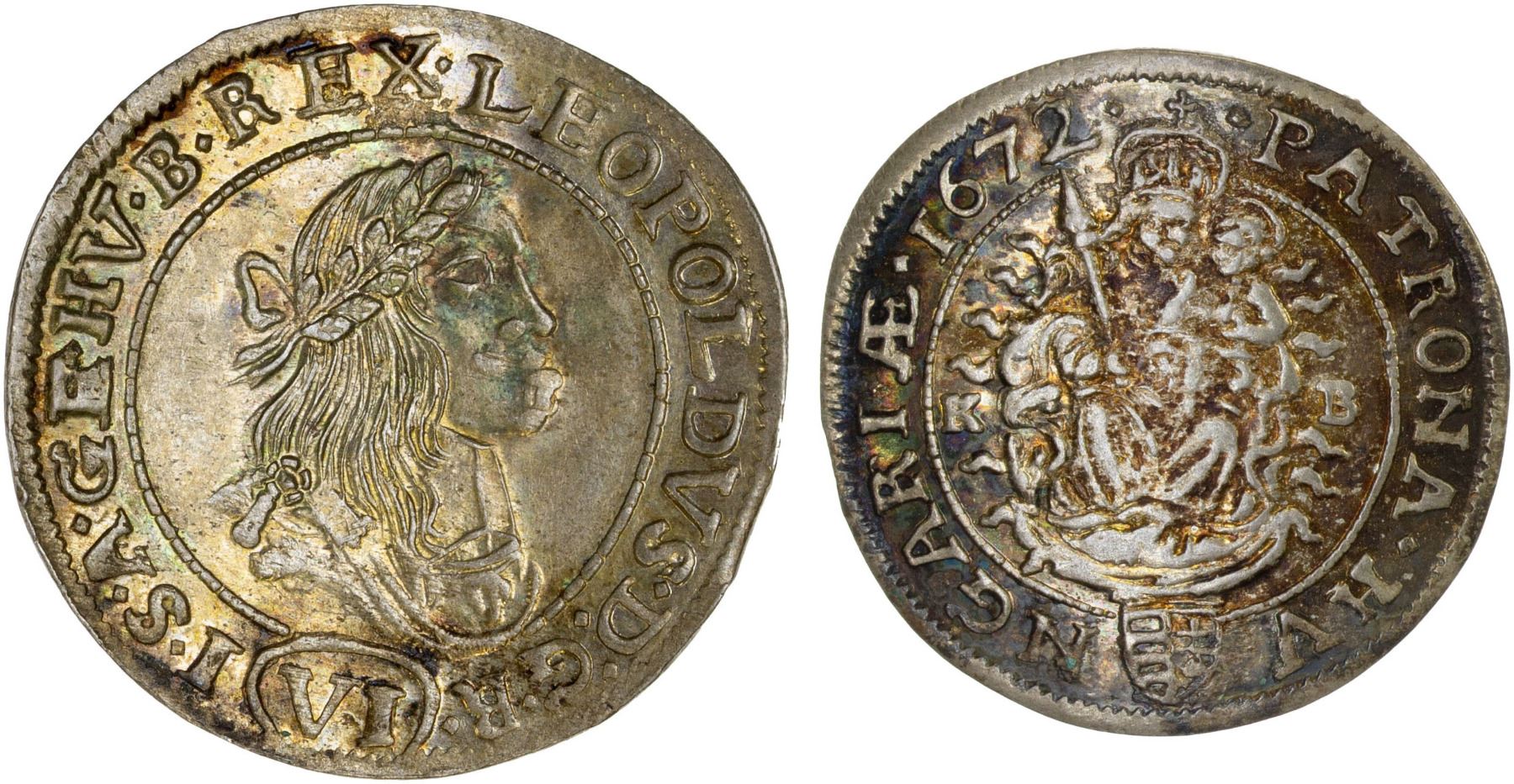 HUNGARY: Leopold I, 1657-1705, AR 6 krajczar, 1672-KB, XF-AU