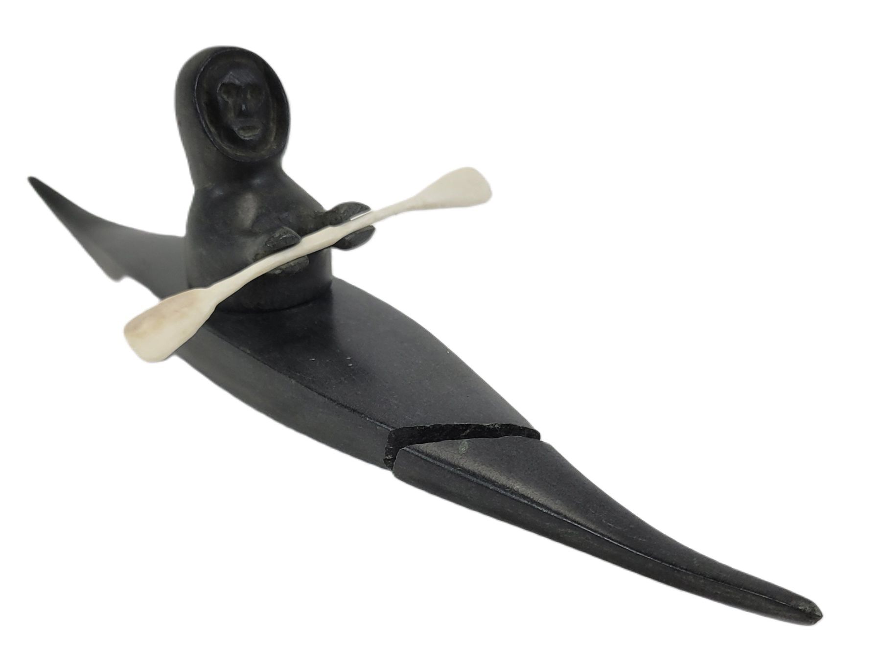 NOTE: - MADE IN BAKER LAKE - CIRCA 1969 - TIP OF CANOE HAS SEPARATED