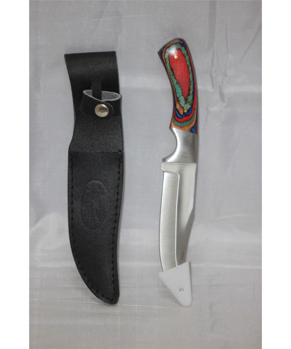 HUNTING KNIFE 9 1/2" PAKKAWOOD HANDLE WITH SHEATH **|**|** HUNTING KNIFE 9 1/2"; STAINLESS STEEL BLADE; AND BOLSTER PAKKAWOOD HANDLE; WITH SHEATH ; MSRP: $0