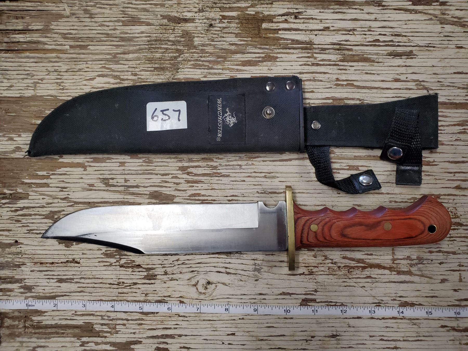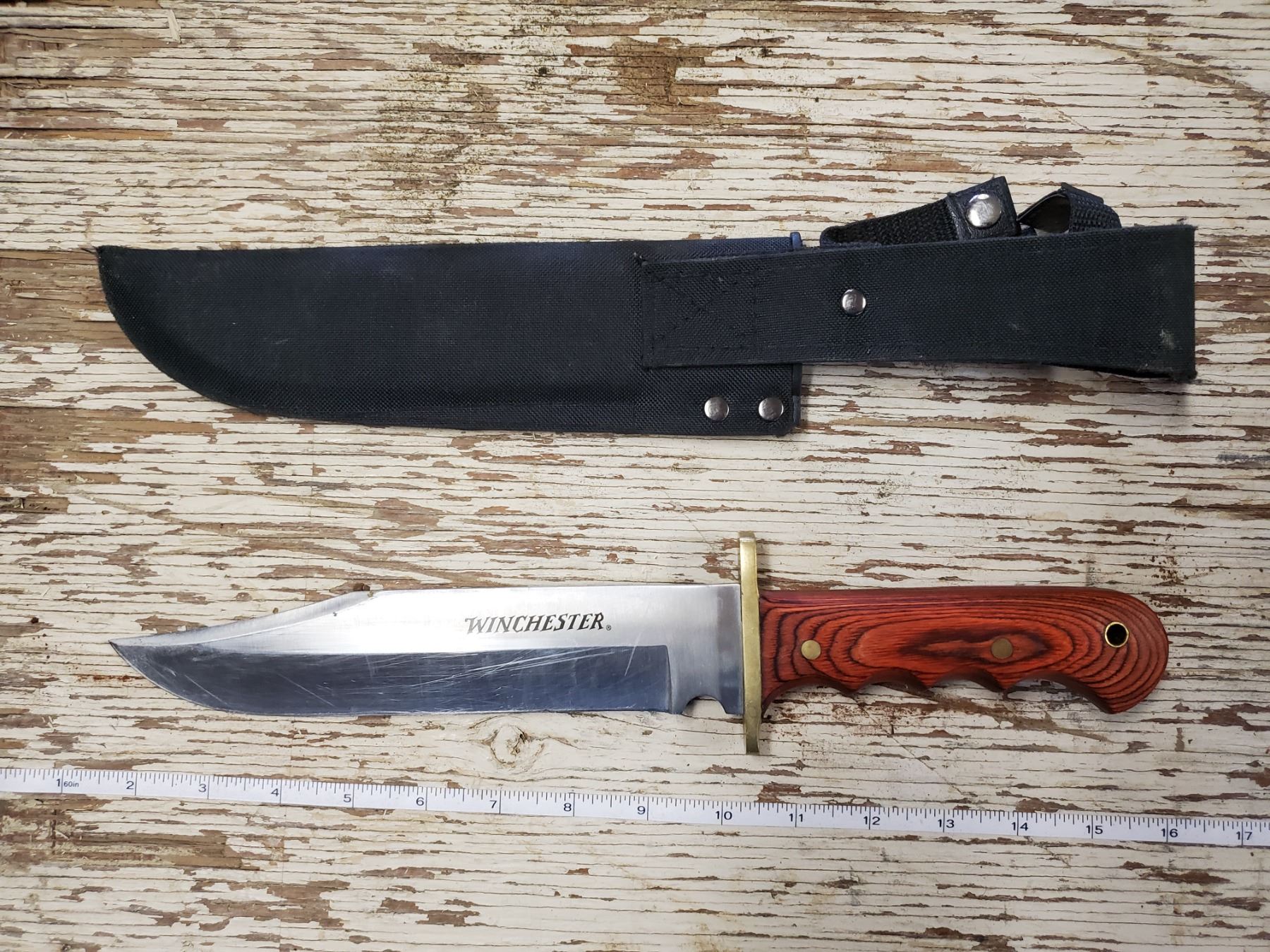 HUNTING KNIFE W/ SHEATH STAMPED WINCHESTER