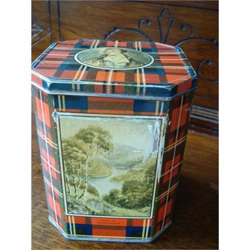 The BEST Robert Burns Scottish Tartan Plaid Tin by the famous and avidly collected British Huntley & Palmers Another fine antique Scottish tin! This is a fabulous Robert Burns tin with a beautiful cameo of Robert Burns himself on the hinged lid. The sides have all the important places of his homeland, Edinburgh Castle, Stirling Castle etc. The tin is gorgeous and most decorative! Its made by the well-loved & known tin maker HUNTLEY & PALMERS Biscuits Reading & London England. It measures about 5 ¼ inches high by 4 inches by 4 inches, in very nice condition & highly decorative. A splendid addition to ones Scottish or English biscuit tins collection. Do view our other Huntley and Palmer tins we have listed.