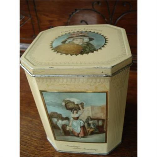 The BEST Cries of London Tin by the famous and avidly collected British Huntley & Palmers Another fine antique English tin! This is a fabulous tin the sides have panels of the famous Cries of London scenes, the graphics are beautiful! The tin is gorgeous and most decorative! Its made by the well-loved & known tin maker HUNTLEY & PALMERS Biscuits Reading & London England. It measures about 4 ¼ inches high by 5 inches across, in very nice condition & highly decorative. A splendid addition to ones English biscuit tins collection. Do view our other Huntley and Palmers tins we have listed.