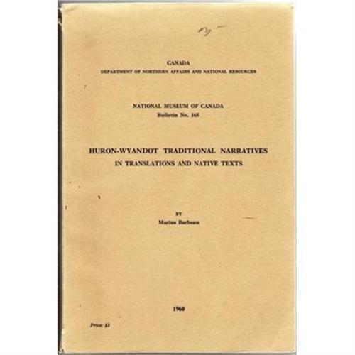 </font></strong>CANADA DEPARTMENT OF NORTHERN AFFAIRS AND NATIONAL RESOURCES NATIONAL MUSEUM OF CANADA BULLETIN NO. 165 HURON-WYANDOT TRADITIONAL NARRATIVES IN TRANSLATIONS AND NATIVE TEXT BY MARIUS BARBEAU 1960 SIGNED BY AUTHOR ON 1ST TITLE PAGE SOFTCOVER 338 PAGES WITH PHOTOS VERY NICE CONDITION SMALL TEAR ON TOP OF SPINE, OTHERWISE EXCELLENT WE HAVE BEEN IN THE ANTIQUE BUSINESS WITH A RETAIL STOREFRONT FOR OVER 25 YEARS, ALL OUR ITEMS ARE GUARANTEED AUTHENTIC AND AS DESCRIBED</font>