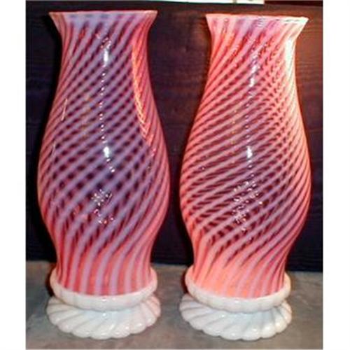 Tall, baluster hurricanes of cranberry swirl or spiral