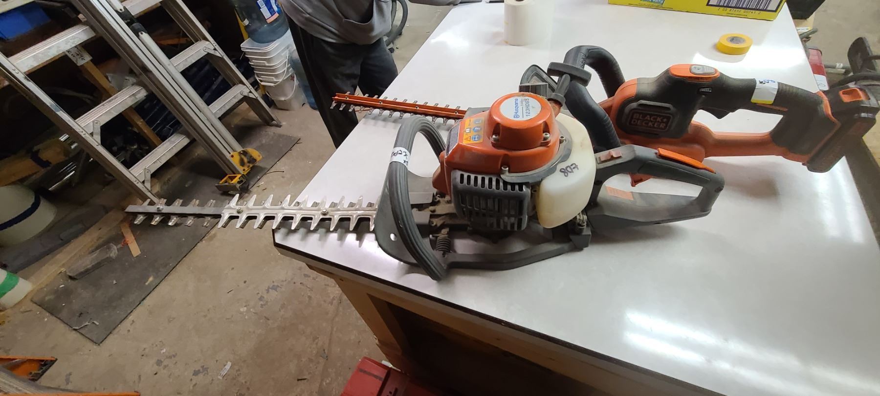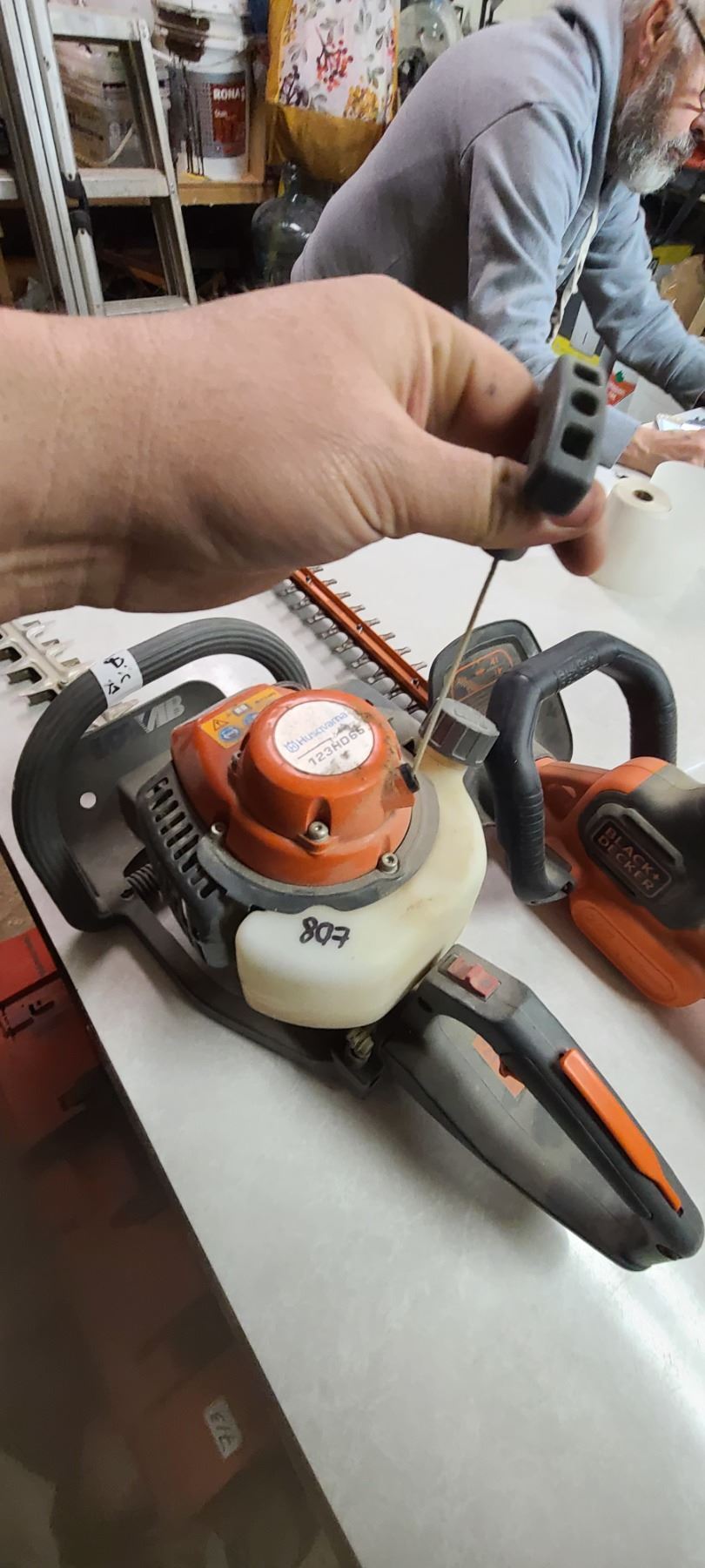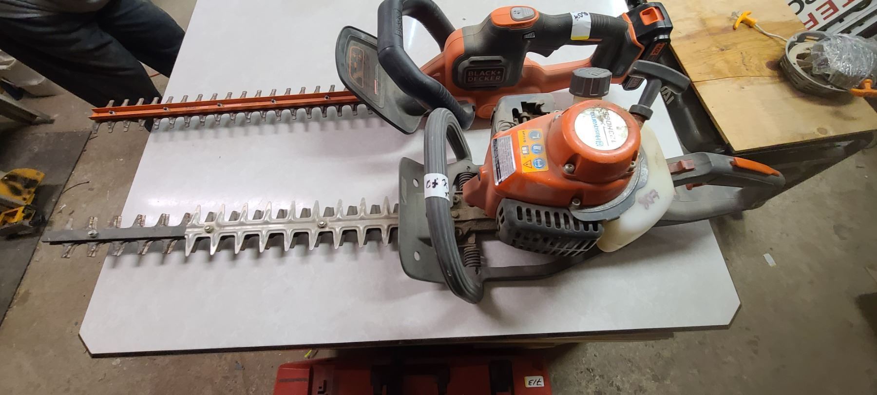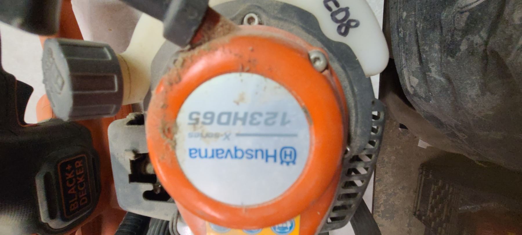 HUSKVARNA 123 HEAVY DUTY 65 GAS TRIMMER HAS GOOD COMPRESSION AND BLACK AND DECKER 20V LITHIUM BATTERY TRIMMER - NO CHARGE