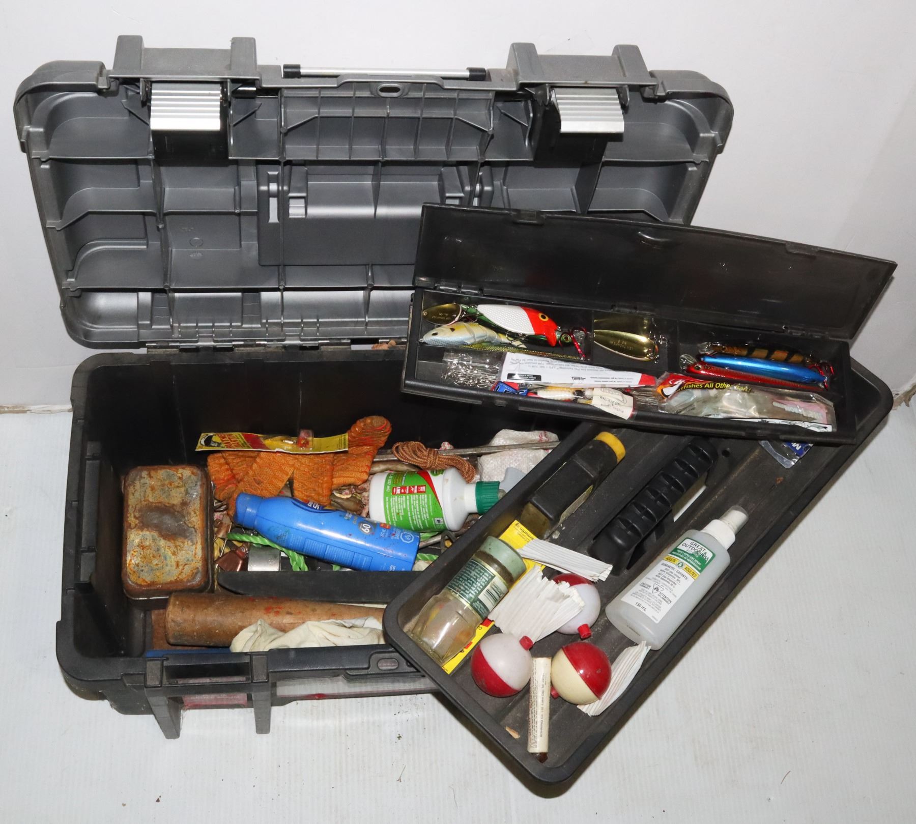 INCLUDES LOTS OF FISHING GEAR, FILLET KNIFE, AND MORE