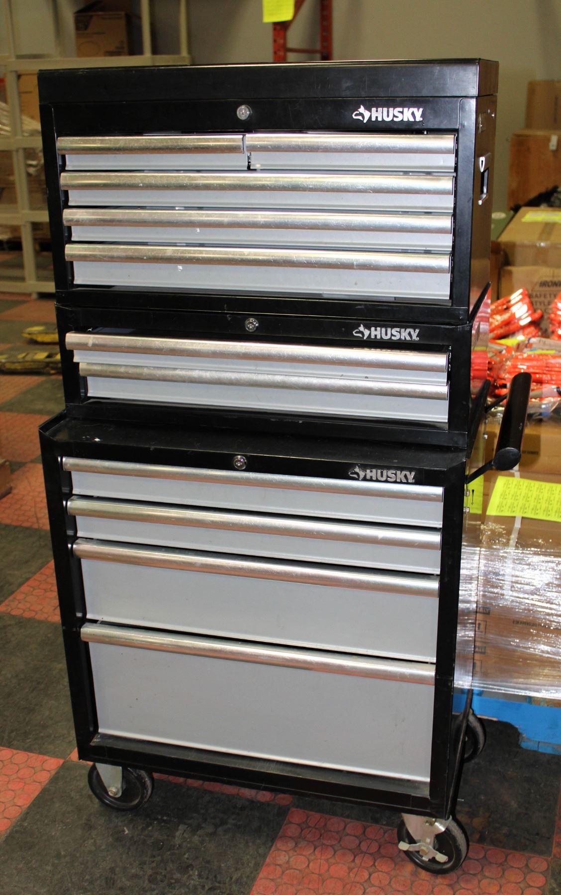 5-DRAWER BOTTOM ROLLING BOX, 2-DRAWER CENTER BOX AND 5 DRAWER TOP BOX WITH TOP STORAGE, ALL DRAWERS WITH LINERS (30"L X 16.5"W X 52"H) **ALL ITEMS MUST BE REMOVED BY 5PM SATURDAY, MARCH 8TH 2025. ALL REMAINING ITEMS WILL BE SUBJECT TO A $6.00 PER DAY STORAGE CHARGE. ANY ITEMS REMAINING AFTER MONDAY, MARCH 24TH 2025 WILL BE CONSIDERED FORFEITED. NO REFUNDS WILL BE ISSUED FOR FORFEITED ITEMS. TO SCHEDULE A PICK UP APPOINTMENT CLICK HERE