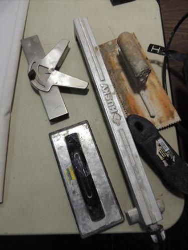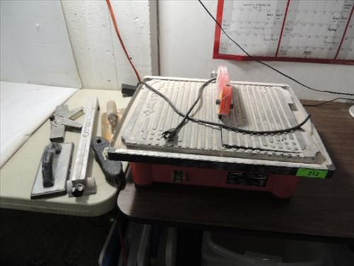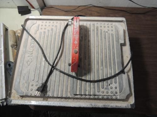 HUSKY MODEL THD750L WET TILE SAW & GUIDES. AS SHOWN. VIEW PICTURE FOR DETAIL.
