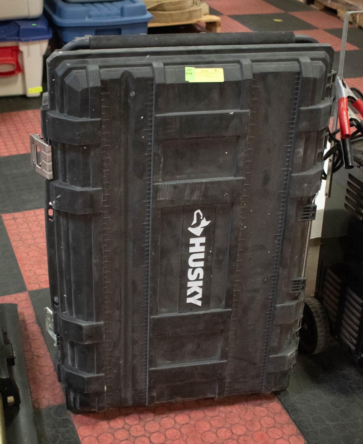 HUSKY TOOL BOX WITH WHEELS AND PULL OUT HANDLE