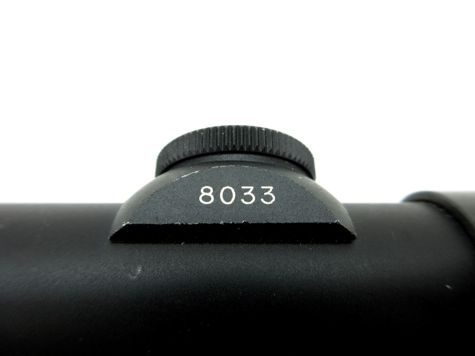 (1) CLEAR OPTICS, GERMAN #1 RETICLE, 1" TUBE DIAMETER, MARKED: "8033" WITH VARIOUS OTHER MARKINGS, WORKING MAGNIFICATION RING, WINDAGE & ELEVATION KNOBS TURN, WITH LENS COVER / SCOPE RINGS, SCOPE SHOWS WEAR & TEAR / USE MARKS. SEE PHOTOS.