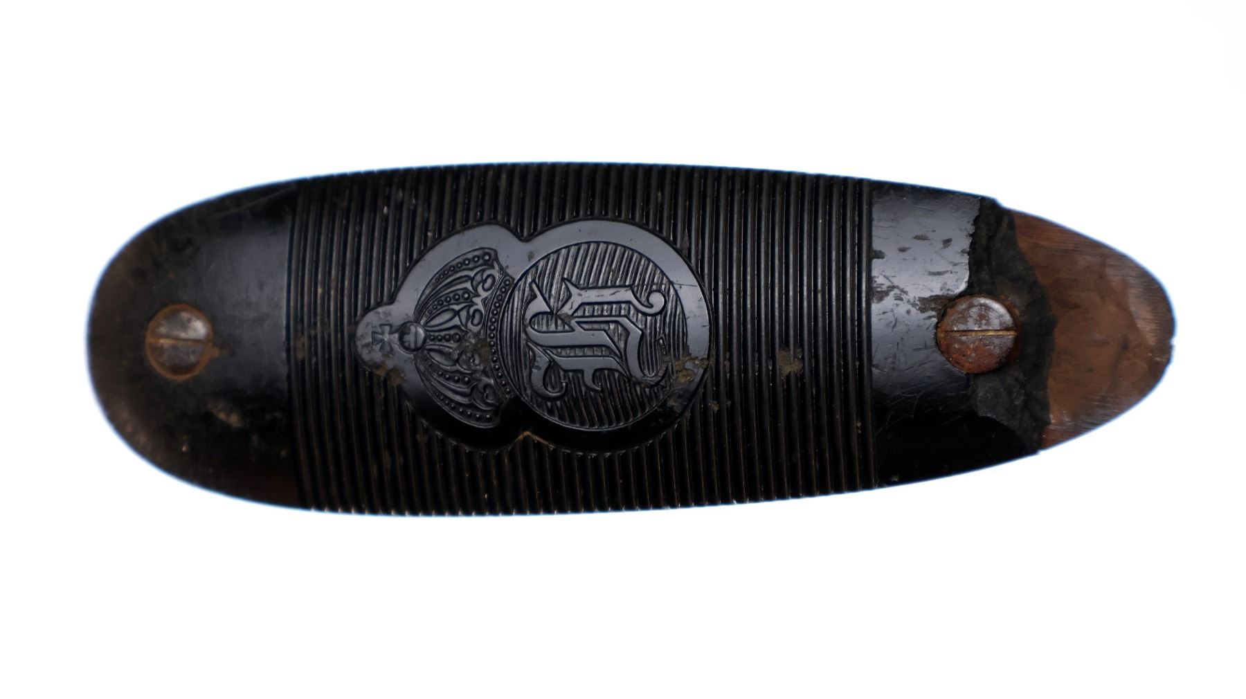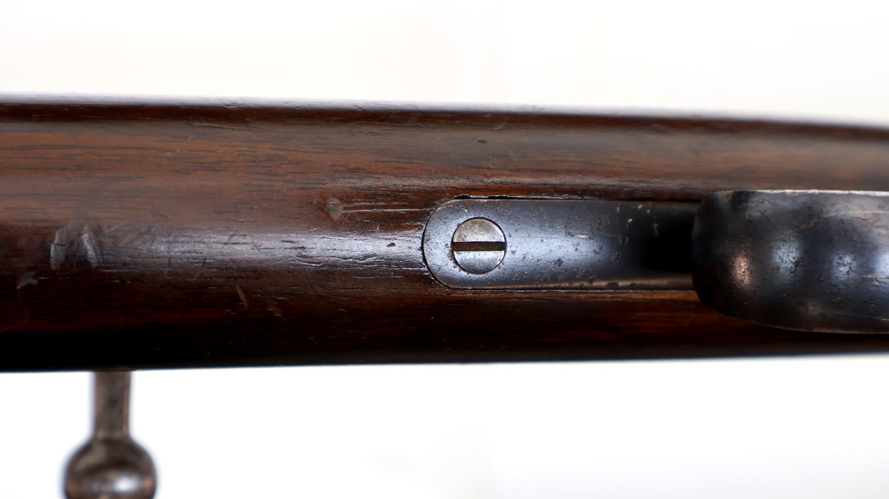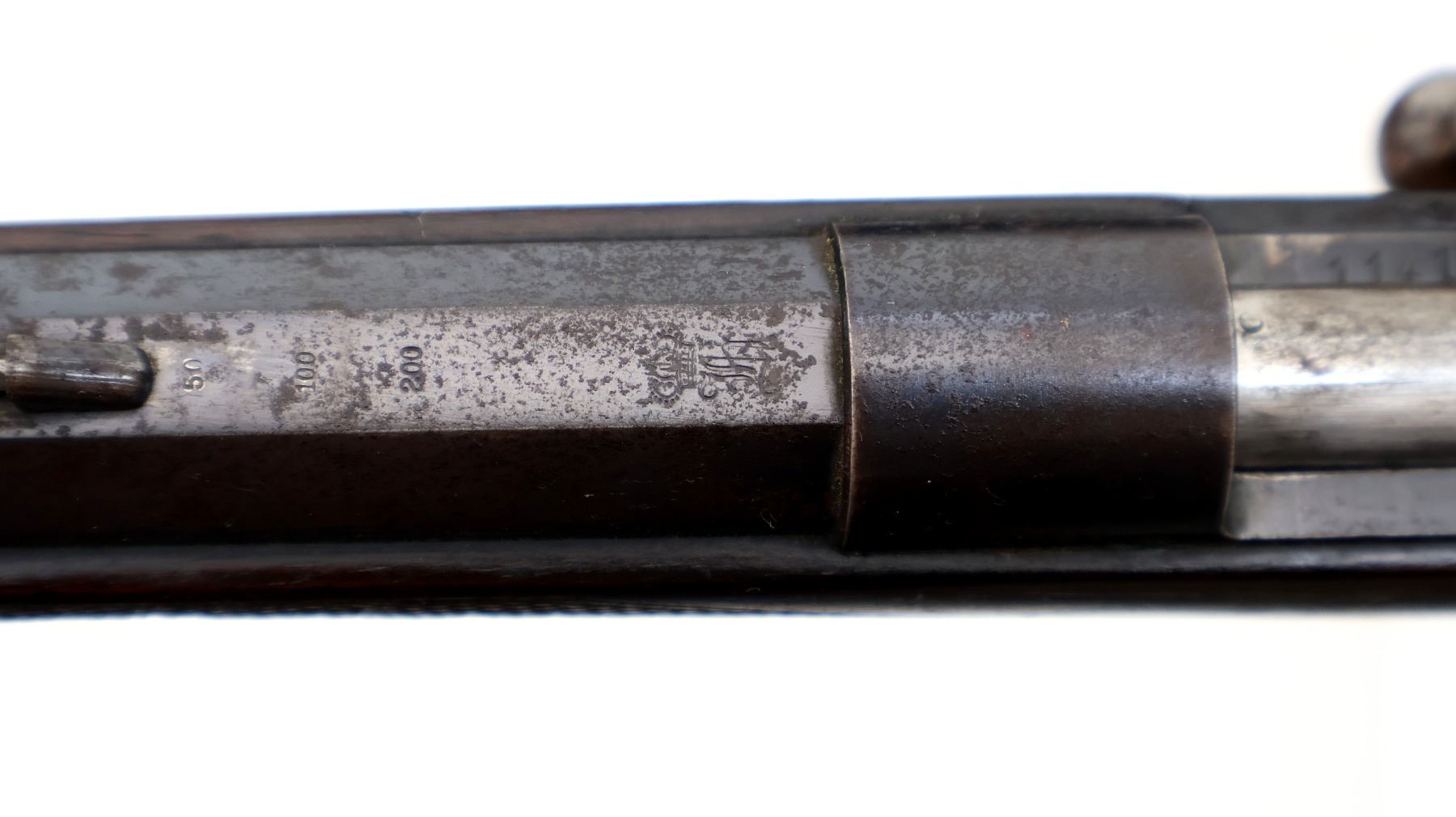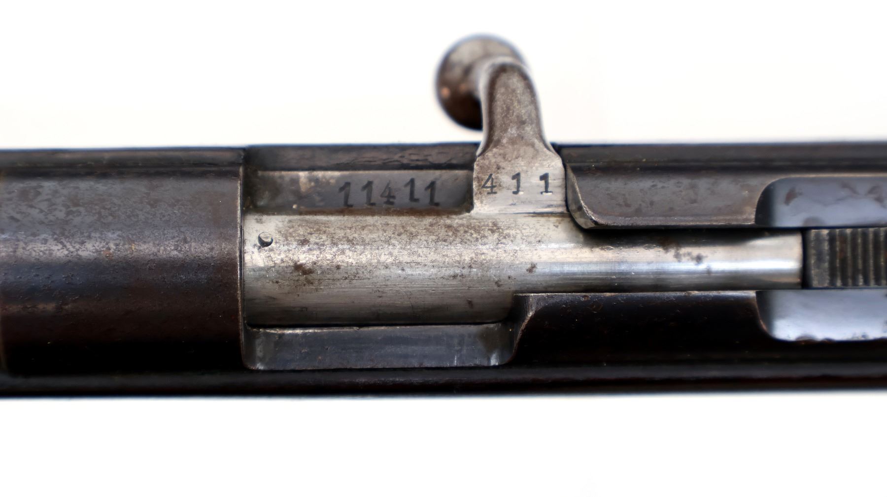 Wear: Metal finish shows light pitting, rust speckles overall, scratches, handling marks and wear. Stock shows marks, scratches and wear.
