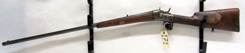 NON-RESTRICTED, SINGLE-SHOT, 16 GA., 35" BAREL, SN 40639. STOCK HAS MANY WEAR MARKS AND DENTS, SMALL SPLINTER MISSING BEHIND RECEIVER, CRACK IN FOREND. BLUEING IS MOSTLY WORN OFF, SOME PITTING ON RECEIVER. BORE HAS SOME PIT MARKS.