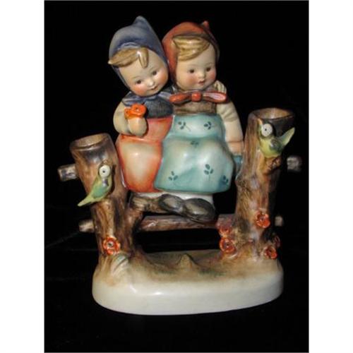 <P>A darling little Hummel entitled "Coquettes" This figurine is listed as "temporarily withdrawn" in Jan. 1999.