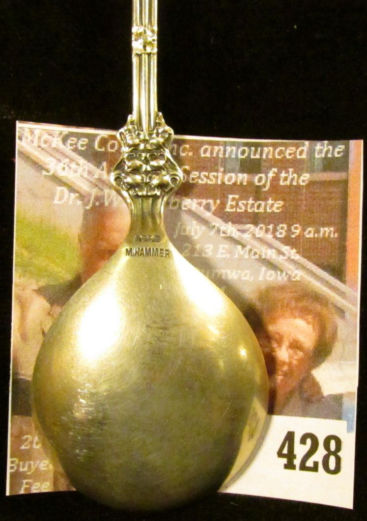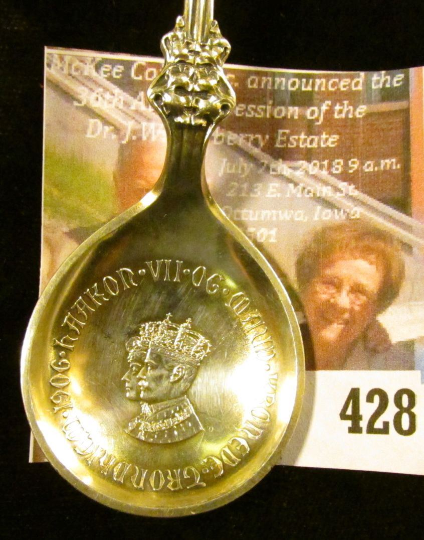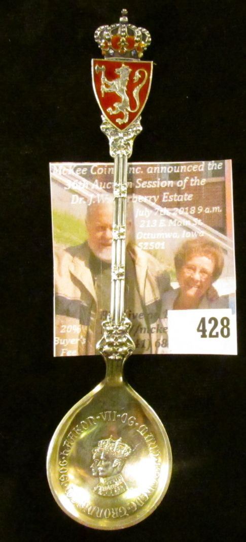 Haakon VII King of Norway 1906 Coronation commemorative spoon, marked 925S M. HAMMER, Ornate enameled handle, unique piece