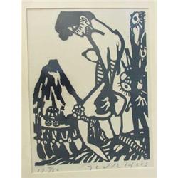 Haas, A. de (1920-1972), linocut, Man and woman in landscape, signed b.r., from series 17, 'Het celibaat', number 11/50, dim. 44 x 30 cm.