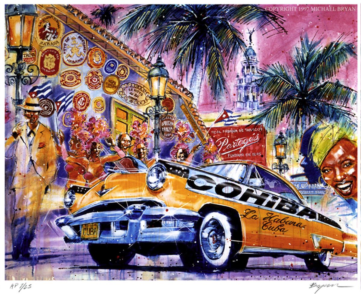 This official artist of the IN-N-OUT Burger chain, has created a limited edition giclee as a peon to the great old cars that populate today's Havana, Cuba . It is a pencil signed, a remarque Studio Proof (SP) edition, with a little pencil drawing by the artist, in the margin. Image size 25x32". Ship weight approx 10 lbs.