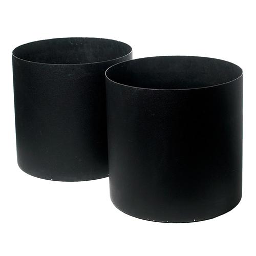 Habitat International planters, pair, aluminum with black finish, labeled "Architectural Supplements Habitat and Habitat International", 16"dia. x 15"h, very good condition