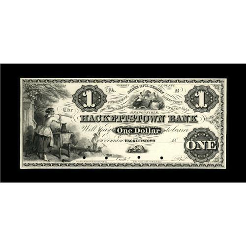 <B>Hackettstown, NJ- Hackettstown Bank</B></I> $1 G2 Wait 724 Proof<BR>A beautiful and incredibly ornate Proof from a bank which is entirely listed as SENC in Haxby. Were it not for these ex-ABNCo sale Proofs, collectors would not be able to marvel at how detailed and intricate the engraving on these items truly is. <B>Uncirculated</B></I> on card stock, 4 POC.<BR><BR><b>Shipping:</b> Coin/Currency (<a target="_blank" href="http://www.heritageauctions.com/common/shipping.php">view shipping information</a>)
