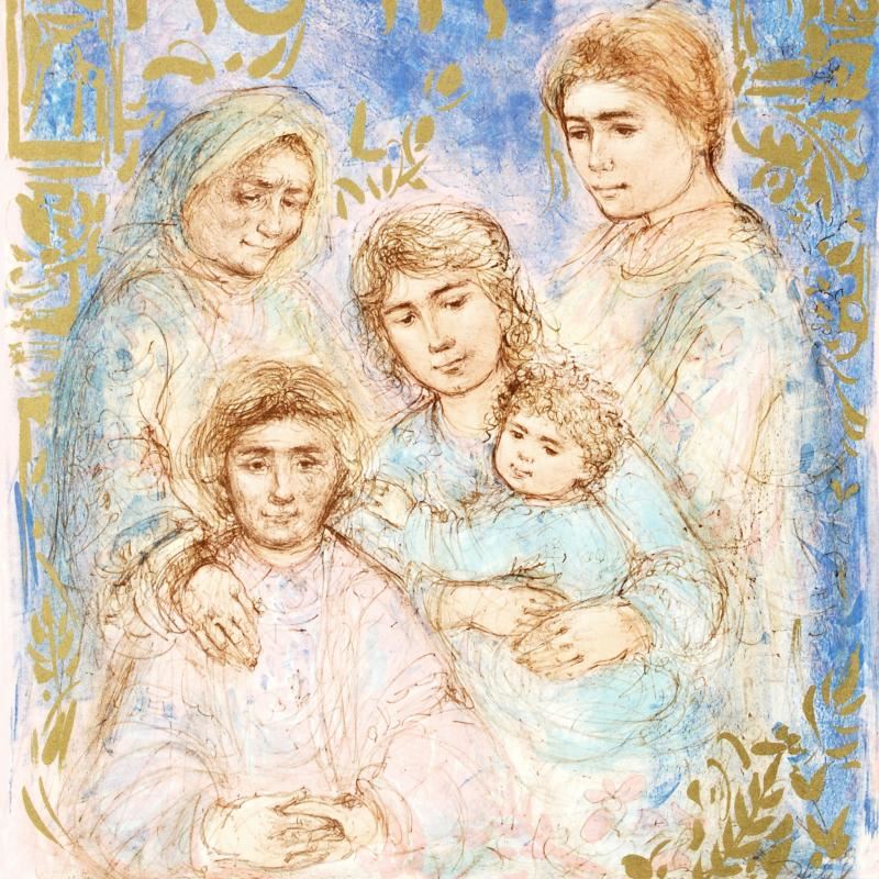 "Hadassah - The Generation" is a limited edition lithograph on paper, numbered and hand signed by Edna Hibel (1917-2014). Includes Certificate of Authenticity! Measures approx. 20" x 25.5" (with border), 17" x 21" (image).