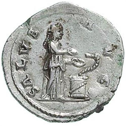 Roman Empire Coins. Hadrian (117-138). Denarius. D/ HADRIANVS AVG COS III PP. Testa nuda a destra. R/ SALVS AVG. La Salus, stante a sinistra, ciba un serpente che si erge da un altare. RIC 267. gr. 2.89 AG. SPL+/SPL.