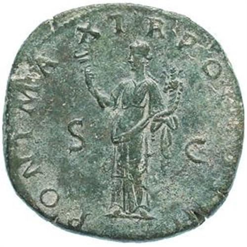 Roman Empire Coins. Hadrian (117-138). Sestertius. D/ IMP CAESAR TRAIANVS HADRIANVS AVG. Busto drappeggiato e laureato a destra. R/ PONT MAX TR POT COS III SC. La Felicitas, stante a sinistra, tiene caduceo e cornucopia. RIC 563a. gr. 22.67 AE. qSPL/SPL. Esemplare molto attraente, con un ritratto di stile magistrale e bella patina verde. Assolutamente intatto.