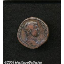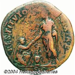 <B>Hadrian.</B></I> A.D. 117-138. AE sestertius (32 mm, 25.33 g). Rome, A.D. 134-138. Bare-headed and draped bust right / RESTITVTO[RI A]CHAIAE, S C in exergue, Hadrian standing left, with right hand raising Achaea kneeling left; vase and palm between. RIC 938; BMC 1781; Cohen 1216. Near VF, unusual red-brown patina with black mottling. <BR><BR><B>Important notice:</B> Heritage usually auctions material at the rate of 200-250 lots per hour. On some occasions eBay Live bid software or the Internet may not be able to keep up with the pace of the auction. We recommend placing a realistic absentee bid now as insurance to avoid disappointment. Occasionally the auctioneer may eliminate or reject an eBay Live bid, and the auctioneer may also reopen a lot after the close of the eBay live bidding (usually because we missed an audience bid), and may reject your bid even if it shows you as the winning bidder. By bidding via eBay Live, you agree that Heritage may award the lot to another bidder at its sole discretion under the circumstances described above or any other reasonable circumstances. Since eBay bids are not shown to us until we open the lot on the floor, we treat those bids just like floor bids. In most cases the floor responds before the eBay bid is presented to us, due to Internet lag time, so for consistency we have made it a policy that floor bids are always considered first over tie eBay live bids. Also please note that all Heritage lots purchased through eBay Live carry a 20% Buyer's Premium. Please make sure you read the Terms and Conditions before you bid.