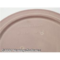 Haeger: <B>A FIGURAL AMERICAN POTTERY CENTER BOWL (Haeger) </B></I><BR>Haeger, c.1930<BR><BR>The rose colored high glazed ground with aqua overspray highlights, frog molded to depict nude lady riding a fish, raised signature <I>Haeger</B></I><BR>11in. high <BR><BR><B>Important notice:</B> Heritage usually auctions material at the rate of 200-250 lots per hour. On some occasions eBay Live bid software or the Internet may not be able to keep up with the pace of the auction. We recommend placing a realistic absentee bid now as insurance to avoid disappointment. Occasionally the auctioneer may eliminate or reject an eBay Live bid, and the auctioneer may also reopen a lot after the close of the eBay live bidding (usually because we missed an audience bid), and may reject your bid even if it shows you as the winning bidder. By bidding via eBay Live, you agree that Heritage may award the lot to another bidder at its sole discretion under the circumstances described above or any other reasonable circumstances. Since eBay bids are not shown to us until we open the lot on the floor, we treat those bids just like floor bids. In most cases the floor responds before the eBay bid is presented to us, due to Internet lag time, so for consistency we have made it a policy that floor bids are always considered first over tie eBay live bids. Also please note that all Heritage lots purchased through eBay Live carry a 24.5% Buyer's Premium. Please make sure you read the Terms and Conditions before you bid.