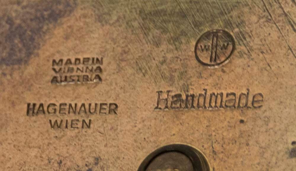 Bronze figure. Stamped Made in Vienna, Austria, Hagenauer Wien, Handmade and logo on bottom. Approx. 10 1/2", 5" wide. Property from the collection of Hank Willoughby, Allenwood, NJ.
