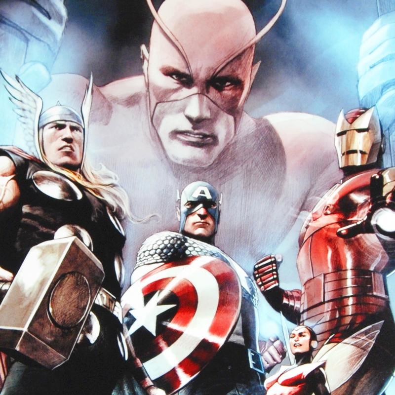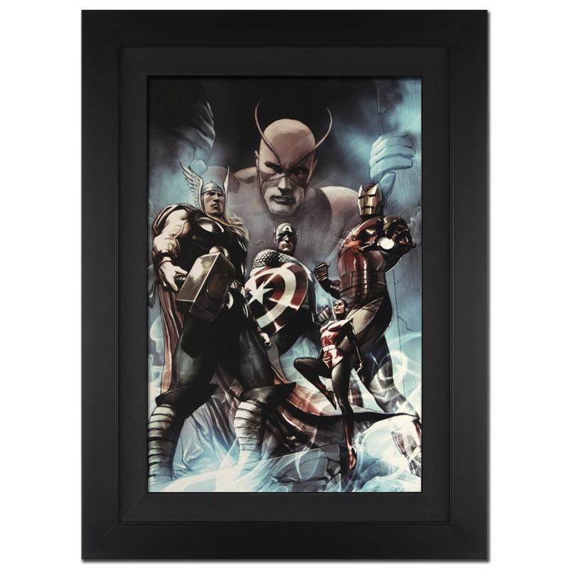 A piece of comic book history, this limited edition, from original art by Adi Granov, depicts Thor, Captain America, Iron Man and Wasp. While working for Marvel, Adi Granov has drawn covers for Spider-Man, X-Men, and the Fantastic Four. Granov also helped design the Iron Man suit for the recent film adaptation. "Hail Hydra #2" is a limited edition giclee on canvas by Adi Granov presented by Marvel Comics, hand signed by the great Stan Lee and numbered out of only 10! This piece has been custom framed and ready to hang. Includes Certificate of Authenticity! Measure approx. 25" x 34" (with frame); 18" x 27" (image).