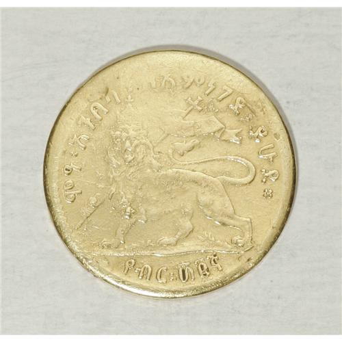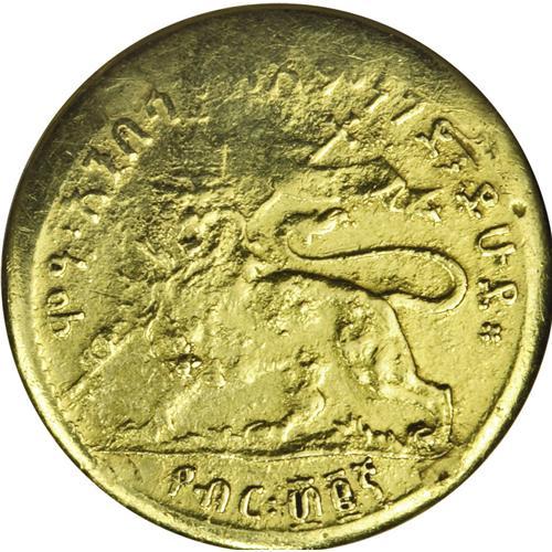 <B>Haile Selassie gold Presentation Werk 1921EE (1929), </B></I>Gill RT8, a crudely manufactured muling of an obverse die for a pattern 1/8 Bir and the reverse die for the copper 1/32 Bir KM11 (Besa.) Basically as struck but pitted in appearance on the obverse due to a badly deteriorated die. The reverse is crude but with better details than the front. Plain edge, 6.20 grams, small test area on the edge.<BR><I>From the Dennis Ritter Collection</B></I><BR><BR><b>Shipping:</b> Coin/Currency (<a target="_blank" href="http://www.heritageauctions.com/common/shipping.php">view shipping information</a>)